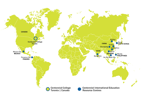 在过去的50多年中,CC已经从一所加拿大本土社区学院发展为世界性的高等教育院校,分别在中国、印度、韩国、越南、菲律宾、巴拿马和墨西哥等国家开设了分院或办事处。