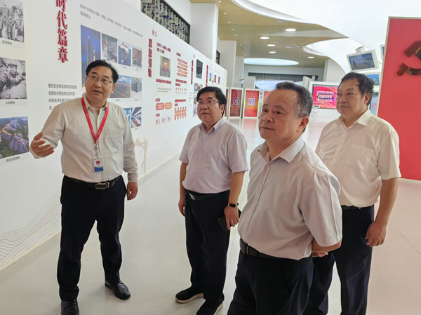 孙红军一行在协鑫集团相关领导陪同下参观了集团未来能源馆和党建馆。在陪同考察的过程中,协鑫集团中央研究院执行院长周曙光介绍了协鑫集团在企业发展历程、战略规划、生产经营、技术攻关等方面的情况;集团党群工作部主任费忠介绍了协鑫集团着力打造“红色引领、绿色发展”党建特色,形成“鑫心向党”协鑫党建品牌,持续强化政治引领,充分发挥企业党建效能,团结广大员工凝聚起巨大的奋斗、创新力量,促进绿色能源事业的发展壮大情况。