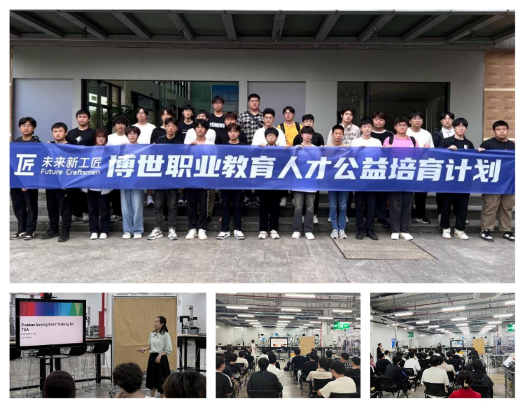 师生一行走访了博世苏州培训中心并参观了公司内部的智能制造实操设备,了解博世实施已久的双元学徒制职业教育模式。此外,来自博世的行业专家为同学们进行了基于企业真实场景的《职业素养专题培训之问题解决》专题培训。