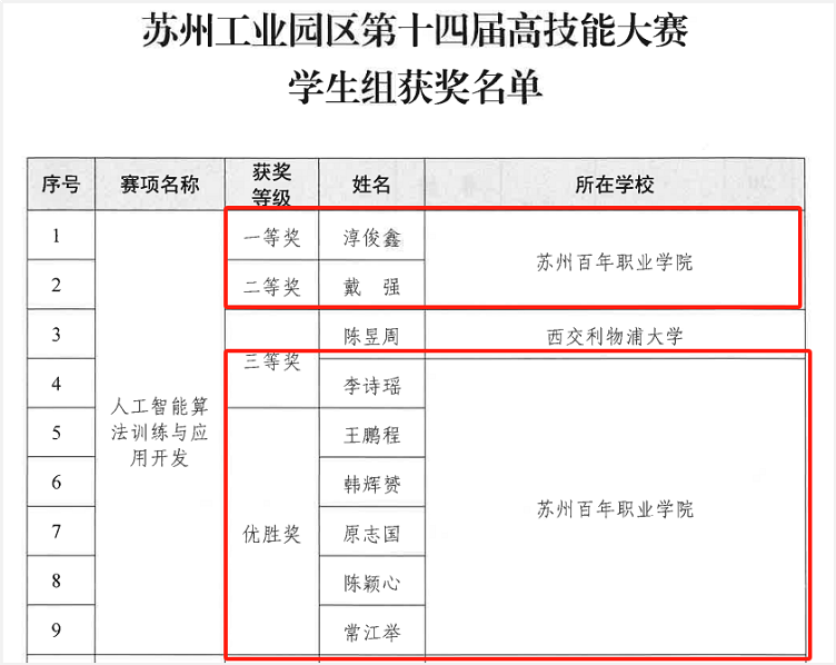 2024年6月2日至8月24日,苏州市“吴地工匠”职业技能系列竞赛活动——苏州工业园区第十四届高技能大赛暨第六届金鸡湖技能邀请赛盛大举行。在备受瞩目的人工智能算法训练与应用开发学生组赛项中,金沙js9线路中心工学院的学生凭借扎实的专业知识和出色的实践技能,大放异彩。