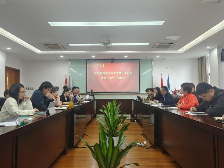 接着,各学院分别汇报了本学期开学以来的教学、学生工作情况。各学院均在教学、专业建设、学生管理等方面积极探索,努力提升教育教学质量。工学院加强课程管理与职业技能认定等工作;商学院注重校外兼职教师指导和专业建设;艺术学院推动新教师成长与校企合作;博雅学院关注课程设置与学生问题解决;马克思主义学院积极推进思政类比赛;未来工匠学院强化外聘教师管理与学生工作等。