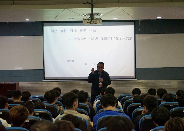随后,“引航导师”鲁伟教授做了以“知己 知彼 目标 抉择 行动”为主题的学生发展讲座,本次讲座旨在帮助同学们更好地认识自我、了解自我,从而明确个人发展目标,做出合理的人生抉择,并付诸实际行动。